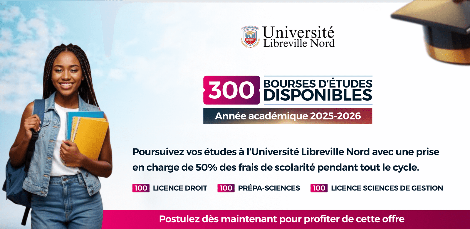 La Direction de l’Université Libreville Nord (ULN) a le plaisir d’annoncer la publication officielle de la liste des candidats retenus dans le cadre du programme de bourses d’études ULN pour l’année académique 2025-2026.